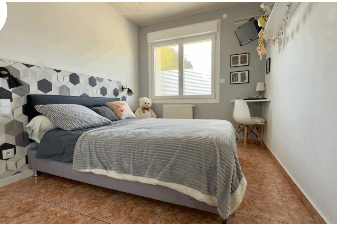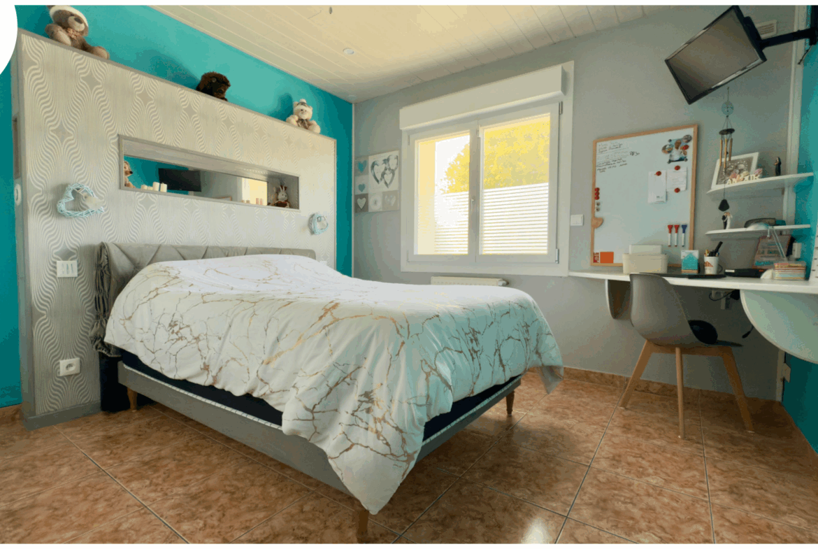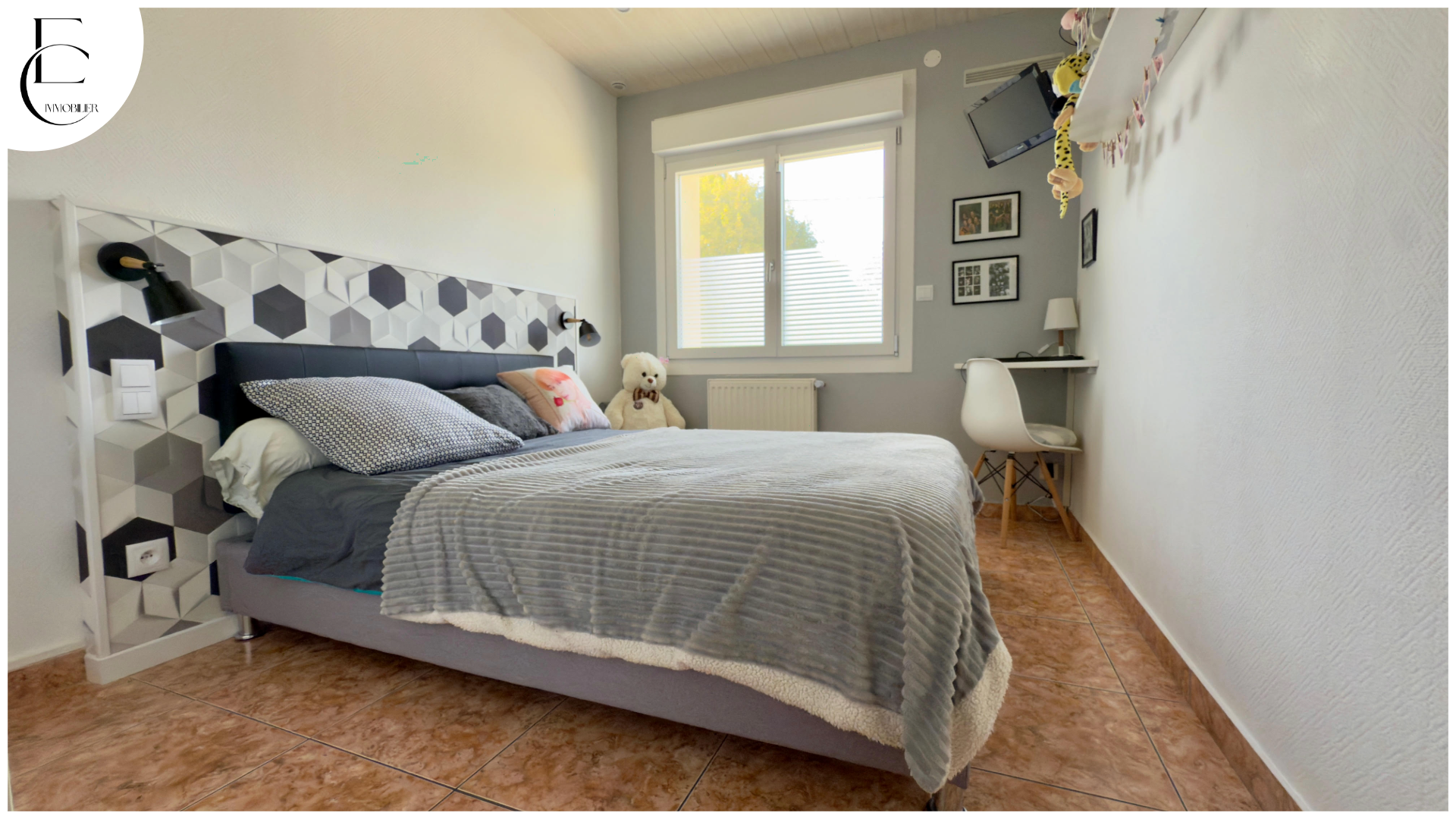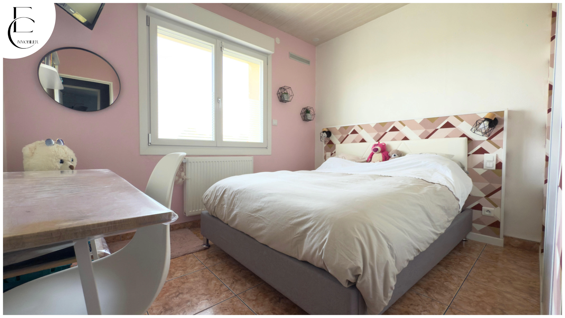 salon-séjour avec cuisine équipée (51m2), 3 belles chambres, 4 pièces en sous sol complet aménagés avec garage 2VL, jardin clos (expo Est) + Hangar de 120m2.