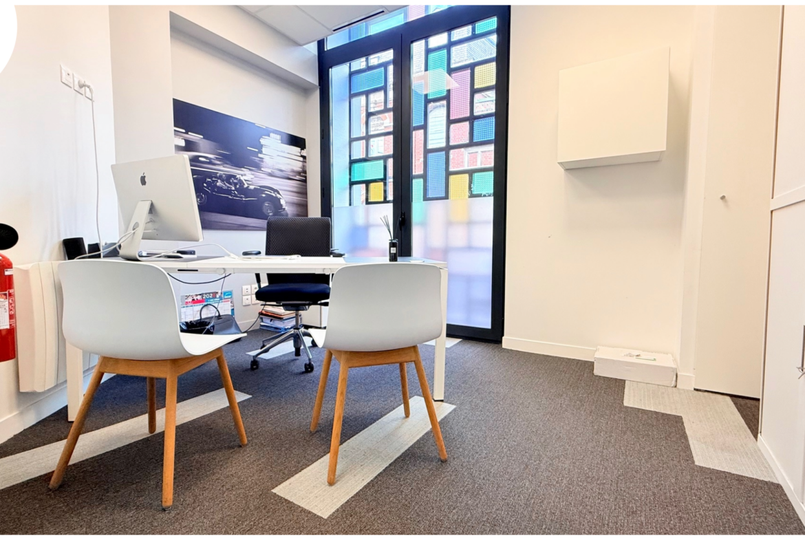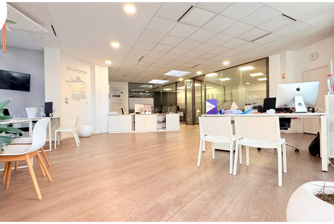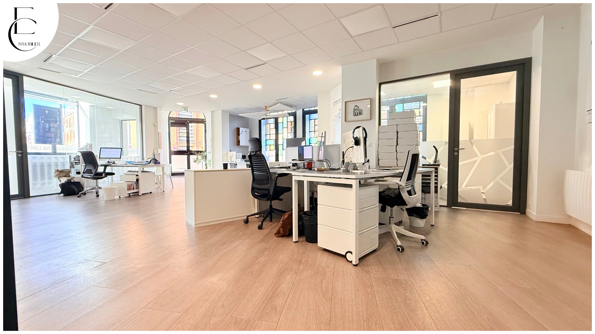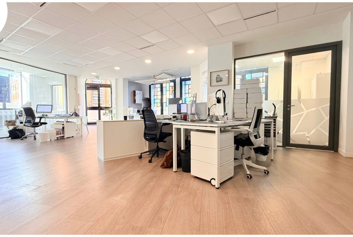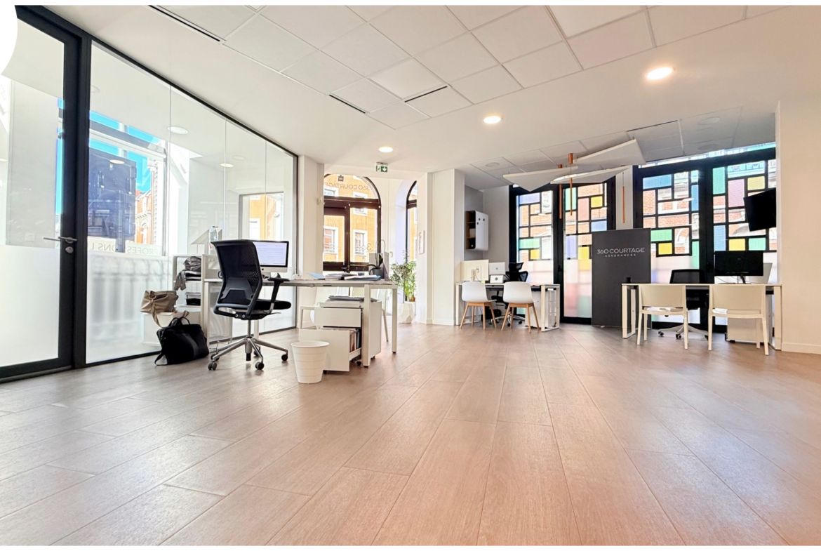 situé en rez-de-chaussée d’un immeuble fin 19ème au style art déco offrant 187m2 habitables comprenant: entrée, Open space (80m2), 4 bureaux, salle repas, cave…