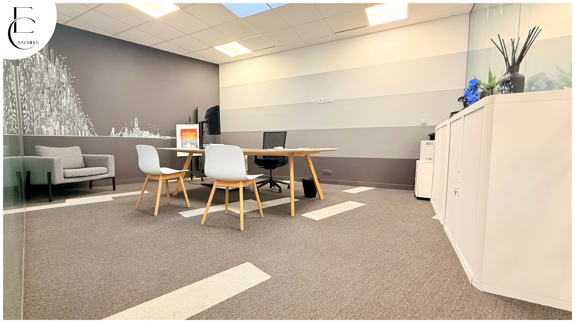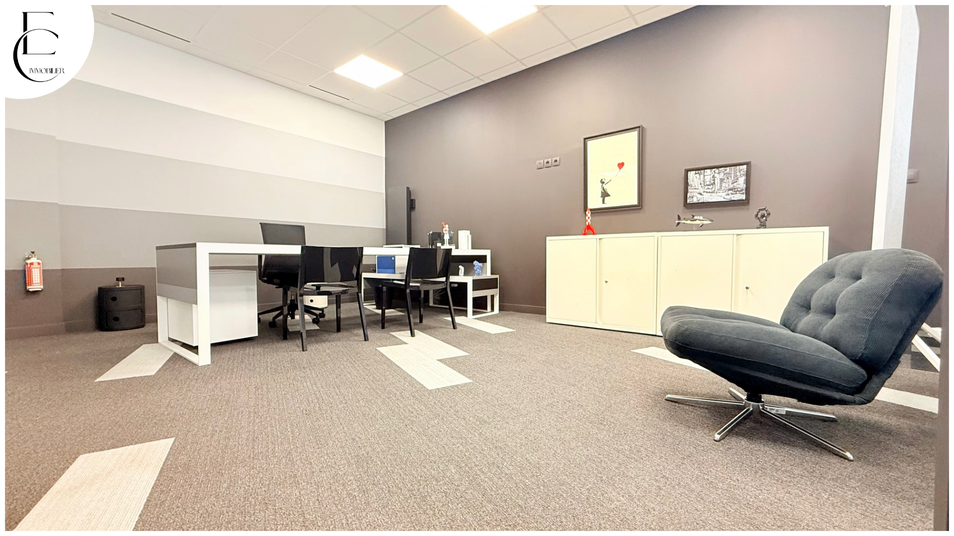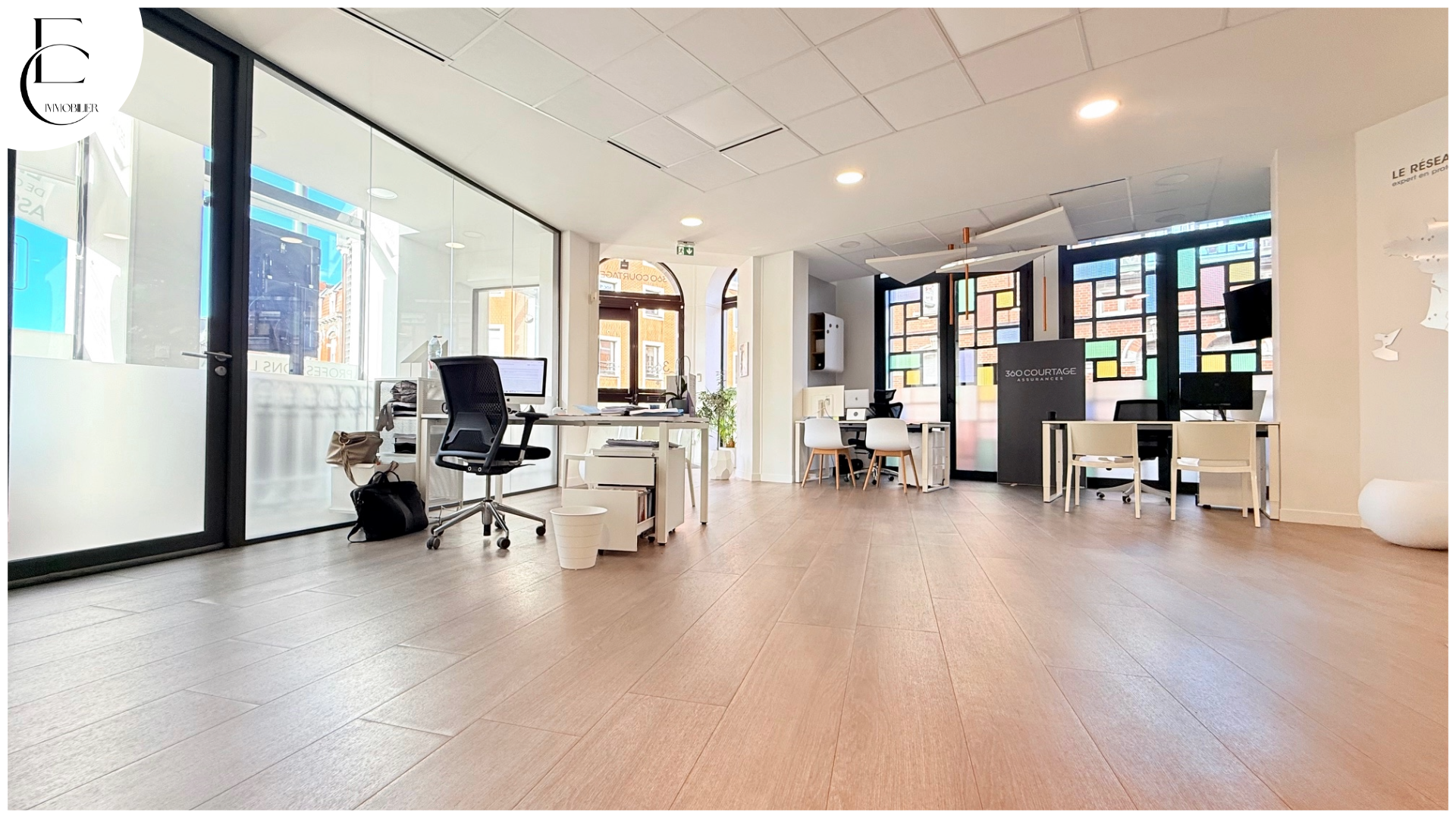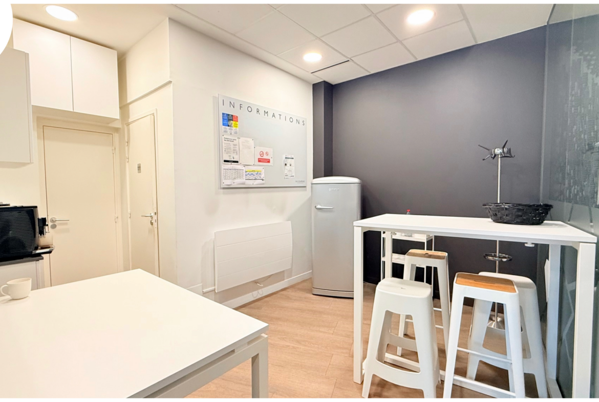 situé en rez-de-chaussée d’un immeuble fin 19ème au style art déco offrant 187m2 habitables comprenant: entrée, Open space (80m2), 4 bureaux, salle repas, cave…